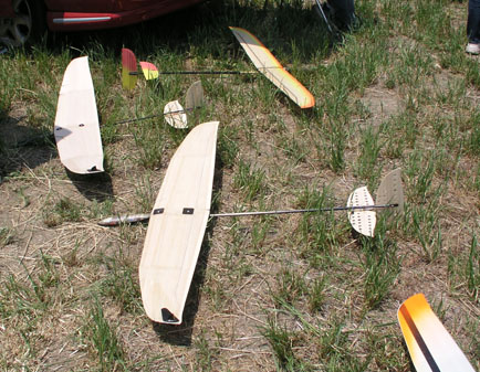 これがまた飛ぶ飛ぶ,浮く浮く,速い速い! 結構たまげます。 普通のラダー機なんですが,手投げからお尻を振りながらも,かなり高く高度をとってのフライト。浮いてしまえば,向かい風も関係なくフィールドを自由に飛び回りリフトを探します。高性能ハンドランチ機やスロープグライダーと比べれば機能面で劣ってみえるでしょうが… 状況次第ではそれらを凌駕するお飛びをみせてます。