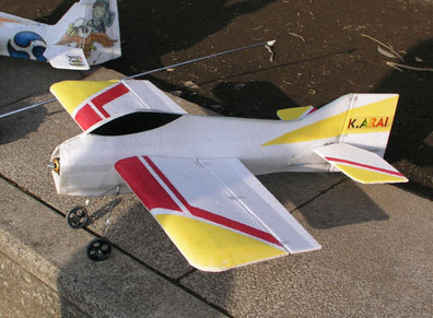 こちらがエンルート湘南店長の自作機! 主翼はRCホビーのマイティーベアの無垢翼だったかな? 失念w