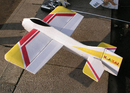 というワケでテストは無事終了。前脚が壊れたのと塗装がちょっとハゲただけでした。前脚はどうやってもまた壊れるだろうから面倒なので接着剤でくっつけて修理完了。塗装も筆を洗うのが面倒なのでティッシュに塗料をつけてぐりぐり塗っただけ。はい、元通り。かなりの自作マニアと思われますw あはは。 ようこそ自作RC飛行機の世界へ。