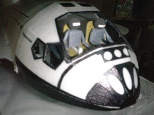 というワケでついにディスカバリー号が完成しました。アタマの熱線カットをちょいと失敗してヘンな形になってしまってますが、化粧をすればホラ、もうスペースシャトルにしか見えませんな笑。…うぅ、初の自作なのでカンベンしてください汗ううぐぐぐw 僕のSD F-16を参考に作ったなんていってたのにw 超リアル路線じゃないっすかw あはは。