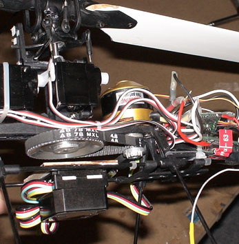 まずメインローター用にはGWSの余っていたアンプを投入! これが意外にいいです。モーター同じでもパワーがでる感じがします。